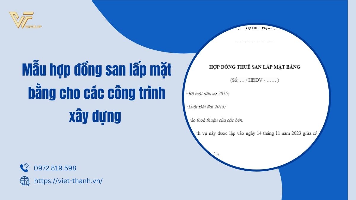San lấp mặt bằng là một trong những khâu quan trọng trong xây dựng, ảnh hưởng trực tiếp đến tiến độ và chất lượng của dự án. Việc lập hợp đồng san lấp mặt bằng rõ ràng, chặt chẽ giúp các bên tham gia hợp tác hiệu quả, hạn chế tối đa tranh chấp phát sinh. Hiện nay có rất nhiều mẫu hợp đồng san lấp mặt bằng phù hợp với từng nhu cầu cụ thể: hợp đồng thuê, hợp đồng nhận thầu, thi công, hợp đồng dịch vụ,… Bài viết dưới đây sẽ cung cấp cho bạn các mẫu hợp đồng san lấp mặt bằng mới nhất, hướng dẫn tải file Word, cũng như lưu ý khi soạn thảo, giúp bạn bảo vệ quyền lợi của mình một cách tốt nhất.