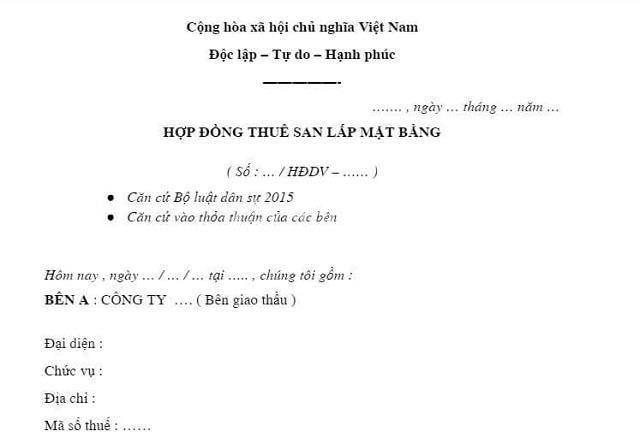 Hợp đồng san lấp mặt bằng là văn bản pháp lý thiết yếu giữa bên thuê và bên thực hiện dịch vụ san lấp, ghi nhận những thỏa thuận cụ thể. Trong đó, các bên cần cung cấp đầy đủ thông tin như tên, địa chỉ, điện thoại, cũng như các chi tiết liên quan đến địa điểm và diện tích san lấp.