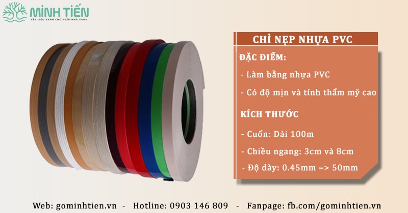 Chúng có kích thước khoảng 0,45mm dày và bản rộng từ 20-40mm, thuận tiện cho việc dán viền mép tủ gỗ. Bên cạnh đó, nẹp chỉ PVC còn là lựa chọn hoàn hảo để bảo vệ các cạnh gỗ, giúp tạo nên những góc cạnh tinh tế mà vẫn đảm bảo tính thẩm mỹ.