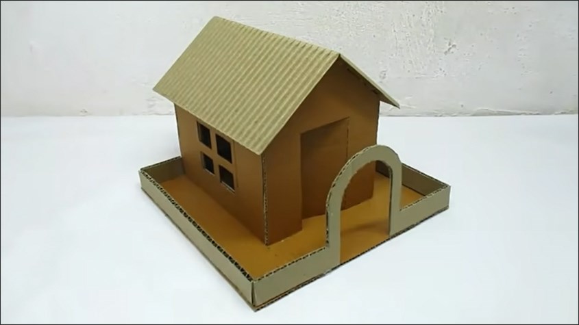 Tiếp theo, sau khi đã có các phần đã cắt, bạn sẽ tiến hành dán chúng lại với nhau. Việc này có thể thực hiện bằng keo dán hoặc băng dính để đảm bảo ngôi nhà chắc chắn. Bước tiếp theo là làm mái hiên và mái nhà, điều này sẽ tạo điểm nhấn cho ngôi nhà thêm sinh động.