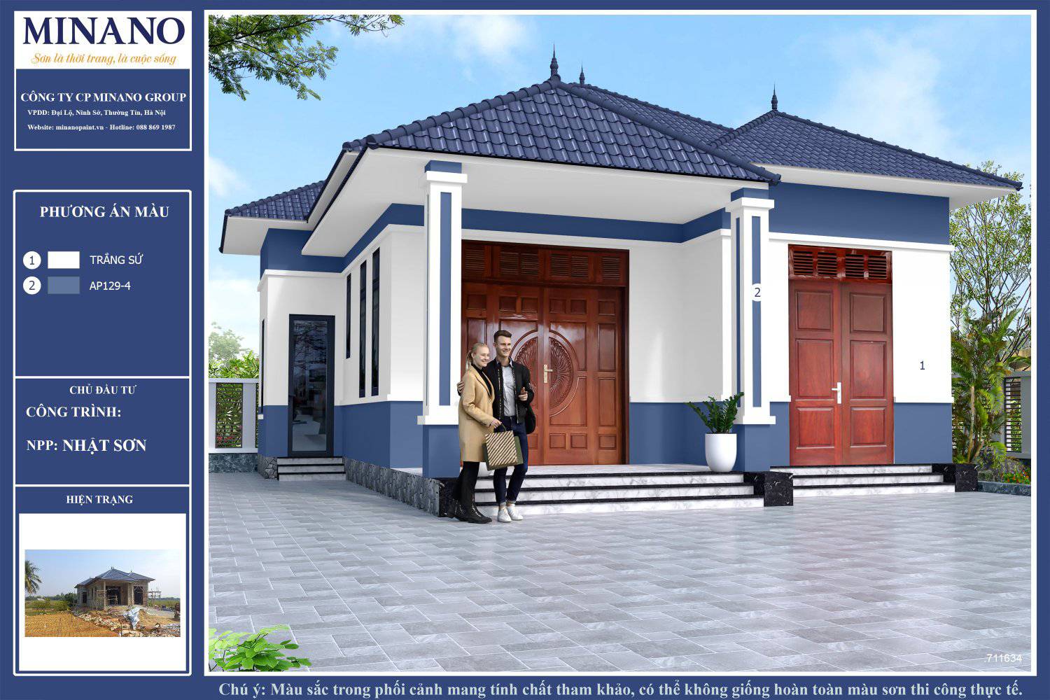 Việc phối màu sơn cho nhà cấp 4 không chỉ giúp tạo điểm nhấn mà còn thể hiện phong cách sống của gia chủ. Bạn có thể bắt đầu với gam màu sáng cho tường nhà để tạo không gian thoáng đãng, kết hợp với mái ngói màu đậm như đỏ gạch hoặc xanh đen để nổi bật vẻ đẹp tổng thể.