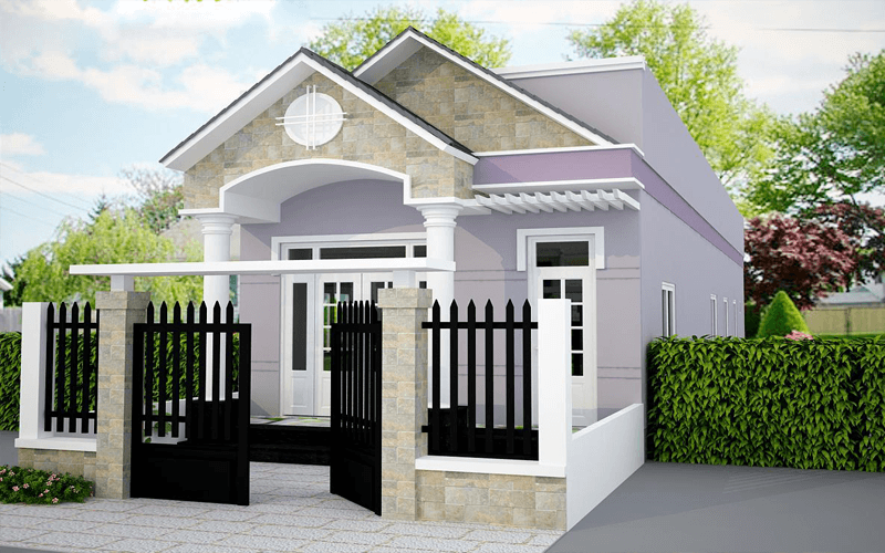 Khi lựa chọn màu sơn cho nhà cấp 4, màu trắng kem luôn là sự lựa chọn hàng đầu nhờ vào phong cách thanh lịch và vượt thời gian. Gam màu này không chỉ mang lại cảm giác thoải mái, nhẹ nhàng mà còn hợp với nhiều phong thủy, đặc biệt là với những ai mệnh Kim. Cửa gỗ nâu kết hợp với hàng rào xanh dương nhạt tạo nên một tổng thể hài hòa, dễ chịu cho ngôi nhà.