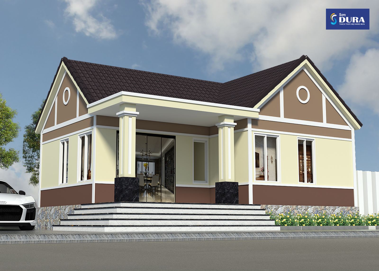 Để duy trì sự tươi trẻ, bạn có thể sử dụng màu vàng cho ngoại thất. Đồng thời, nếu kết hợp các màu đơn sắc như xanh lam nhẹ, vàng nhẹ với gam màu trung tính như nâu hay kem, ngôi nhà sẽ trở nên sang trọng và không bị ngột ngạt. Một màu sơn ngoại thất đẹp sẽ tạo ấn tượng hoàn hảo cho ngôi nhà cấp 4 của bạn.
