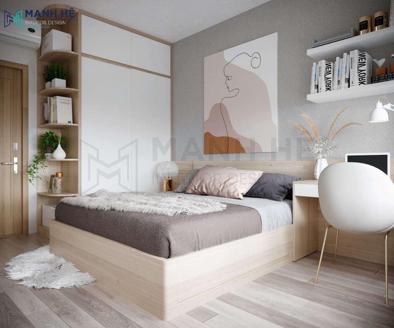 Ngoài ra, các gam màu trung tính như xám cũng có thể được sử dụng, đặc biệt khi kết hợp với nội thất màu trắng hoặc đen để tăng thêm phần sang trọng. Màu xám có tính linh hoạt, dễ dàng phối hợp cùng các màu sắc khác, mang lại vẻ đẹp hiện đại cho không gian ngủ của bạn.