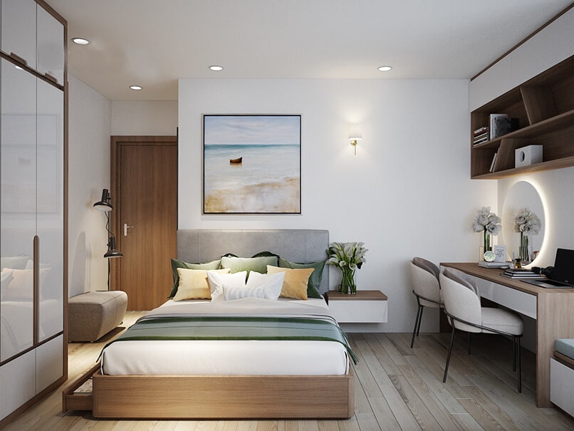 Ngoài ra, việc tối giản nội thất và lựa chọn đồ dùng đa năng là rất quan trọng. Điều này giúp tránh sự bừa bộn và mang lại cảm giác thoải mái hơn. Bạn cũng nên chú ý đến sàn và ốp lát, chọn loại gạch ít họa tiết nhằm tăng cường sự thoáng đãng cho phòng ngủ.