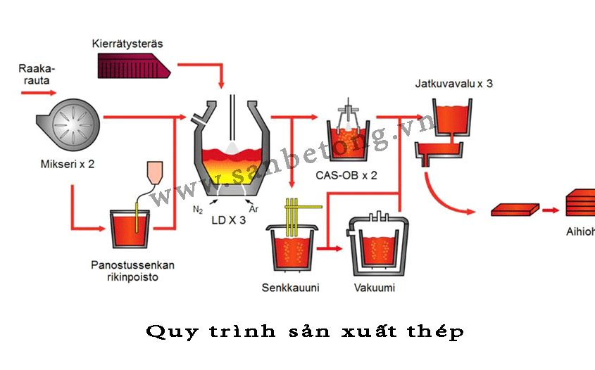 Quy trình sản xuất thép thường bắt đầu từ việc xử lý nguyên vật liệu đầu vào, chủ yếu là quặng sắt. Quặng sẽ được chế biến, phối trộn với than coke, vôi và dôlômit theo tỷ lệ nhất định. Sau đó, bước tiếp theo là tạo ra dòng sắt thép nóng chảy, trong đó những tạp chất như silicon, carbon và sulphur sẽ được loại bỏ.