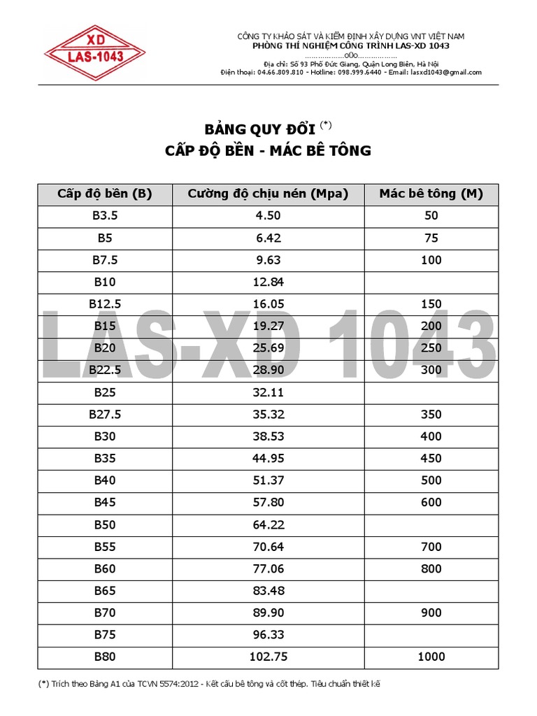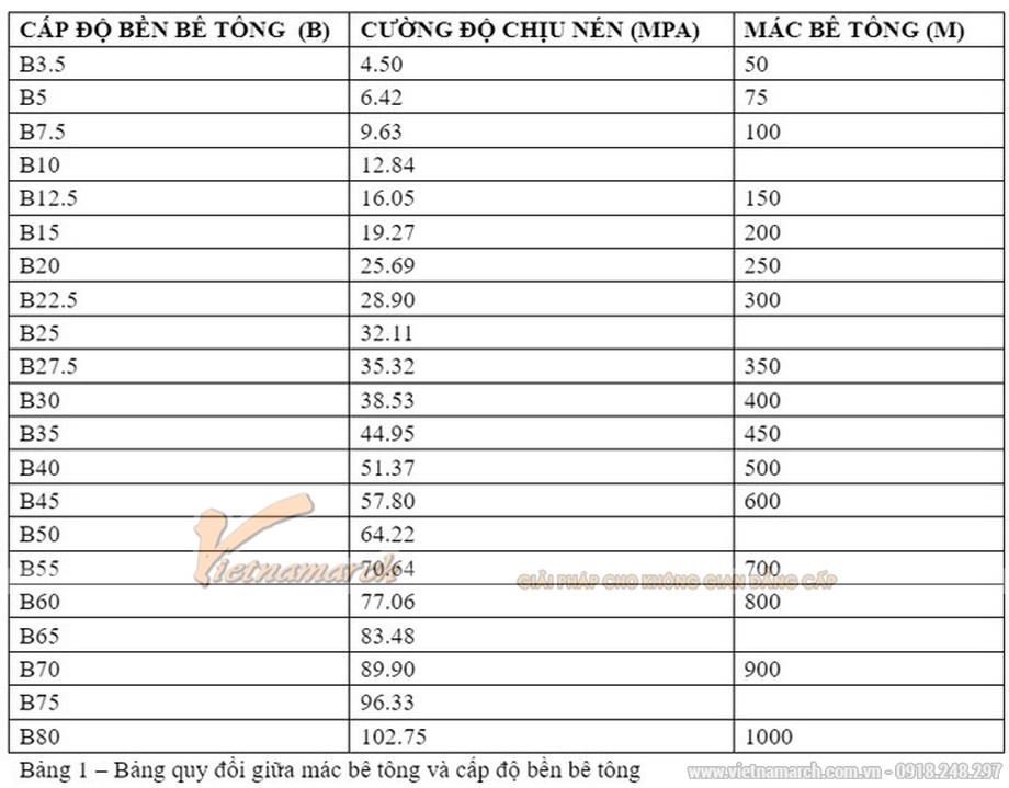 Bảng Quy Đổi Mpa Sang Mác Bê Tông