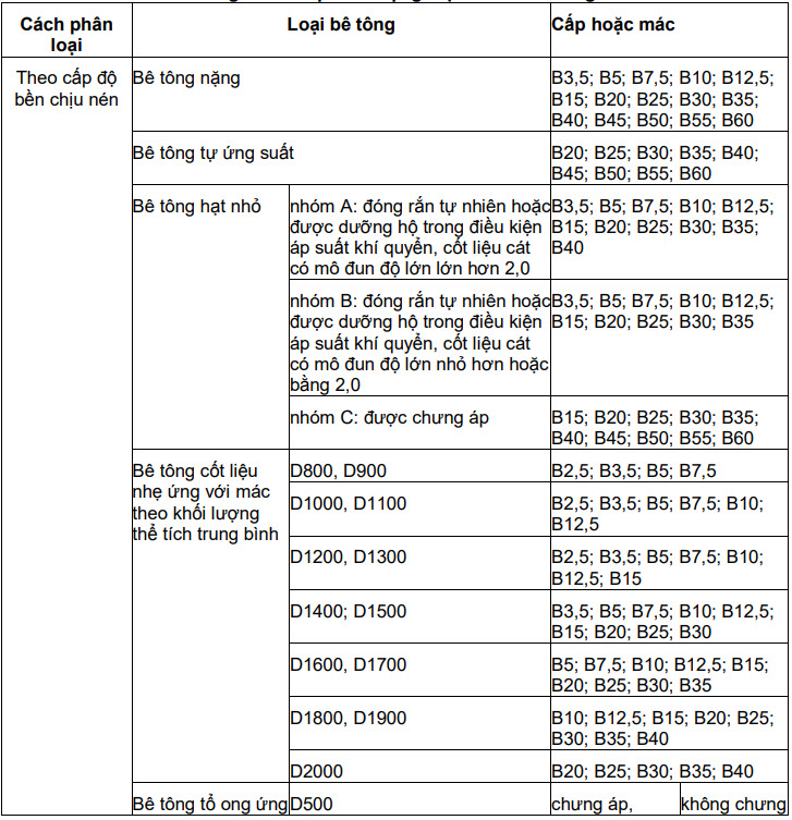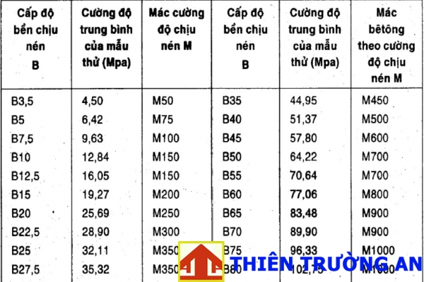 Các Cấp Độ Mác Bê Tông Theo Mpa