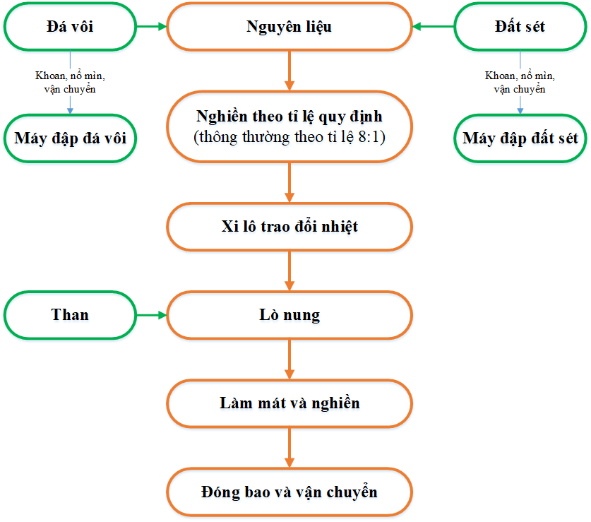 Sau khi khai thác, các nguyên liệu này được đưa vào quá trình xử lý để nghiền nhỏ và trộn lẫn với nhau. Tiếp theo, hỗn hợp được nung ở nhiệt độ cao để tạo ra clinker. Quá trình này còn có sự tham gia của phụ gia như thạch cao thiên nhiên, vỏ sò và đất sét, giúp cải thiện tính chất của xi măng.