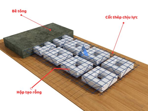 Một điểm đáng chú ý khác là khả năng tiết kiệm chi phí và thời gian thi công. Nhờ trọng lượng nhẹ hơn so với sàn đặc cùng kích thước, sàn bê tông cốt thép giúp giảm tải trọng xuống móng và giảm lượng bê tông tiêu thụ tới 35%, đồng thời tiết kiệm lượng thép cần thiết. Điều này không chỉ làm giảm chi phí mà còn góp phần rút ngắn thời gian xây dựng.