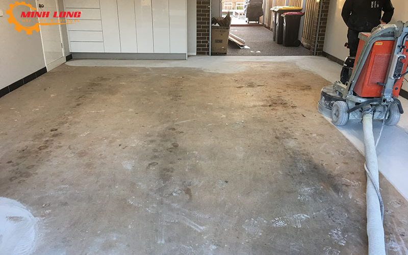 Sau khi chuẩn bị, công đoạn mài sàn sẽ bắt đầu. Sử dụng các máy mài chuyên dụng, lớp bê tông bề mặt sẽ được mài đi một cách chính xác để tạo độ nhẵn bóng. Đây là bước quan trọng vì nó quyết định chất lượng và độ bền của sàn bê tông sau này.