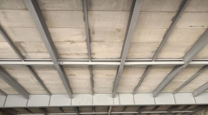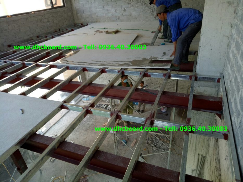 Quy trình thi công bắt đầu bằng việc xây dựng hệ kết cấu dầm chịu lực bằng dầm thép I hoặc sắt hộp. Công đoạn này đòi hỏi tính toán kỹ lưỡng để đảm bảo sức chịu tải cho sàn. Sau đó, các tấm panel bê tông nhẹ được lắp ghép trên khung thép, tạo nên một mặt sàn vững chắc và đồng nhất.