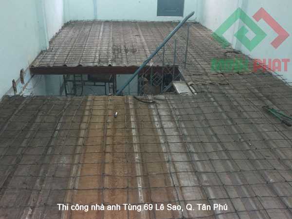 Quá trình thi công sàn đúc giả bắt đầu bằng việc gác khung sắt lên tường, sau đó trải lớp tole hoặc tấm Cemboard lên. Tấm Cemboard không những nhẹ mà còn có độ dày từ 12–20mm, chỉ bằng ¼ trọng lượng so với sàn bê tông thông thường, mang lại nhiều lợi ích về sức bền và khả năng chống cháy, chống thấm.