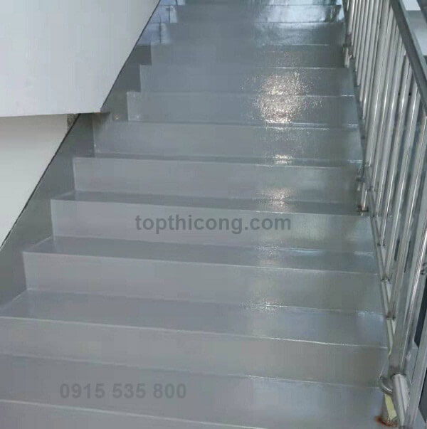 Đặc biệt, sau khi thi công lớp sơn lót, hãy rắc cát thạch anh lên bề mặt cầu thang để tăng khả năng chống trơn trượt. Cuối cùng, bề mặt sơn epoxy sẽ trơn mịn, dễ vệ sinh, giúp giữ cho cầu thang luôn sạch sẽ và an toàn trong suốt quá trình sử dụng.