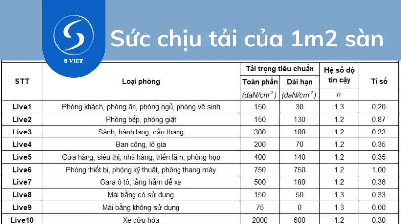 Theo tiêu chuẩn TCVN 4054-2005, mức chịu lực tối thiểu được quy định là 250 kg/m², nhằm đảm bảo an toàn và độ bền cho các công trình xây dựng. Đối với các công trình công cộng như trường học hay bệnh viện, sức chịu tải có thể cao hơn, khoảng 300 – 500 kg/m², phụ thuộc vào mục đích sử dụng.