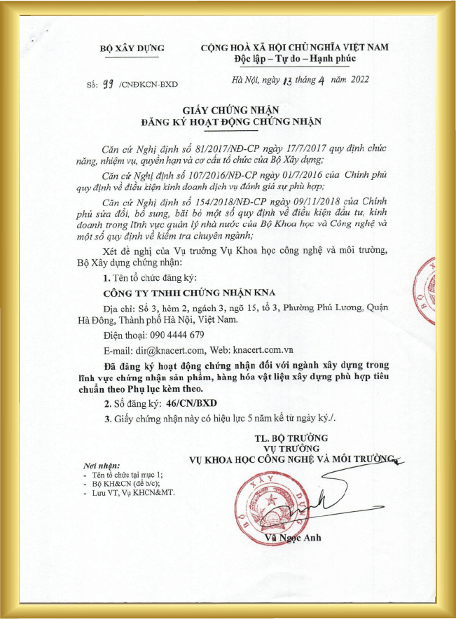 Việc chứng nhận hợp chuẩn cho tấm thạch cao theo TCVN 8256:2009 cũng rất quan trọng. Điều này không chỉ đảm bảo rằng sản phẩm đạt yêu cầu chất lượng mà còn giúp người tiêu dùng có thêm niềm tin trong lựa chọn vật liệu xây dựng. overall, tiêu chuẩn này giúp nâng cao hiệu quả sử dụng và tính an toàn cho các công trình xây dựng hiện đại.