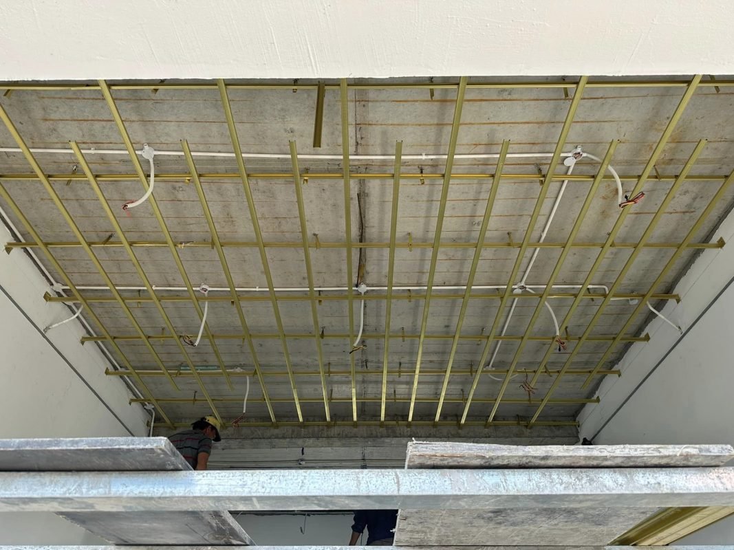 Trước khi lắp, đội thợ thường dùng máy laze quét cos, búng mực hoặc ống Nivô để xác định cao độ, lấy điểm thấp nhất làm chuẩn theo bản vẽ trần. Công trình dùng vật liệu chính hãng từ đơn vị như Tân Hải Vân, được thi công bởi đội ngũ chuyên nghiệp và kèm bảo hành dài hạn, đảm bảo độ bền và an toàn.