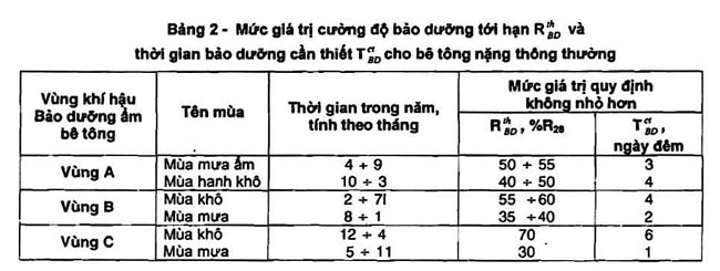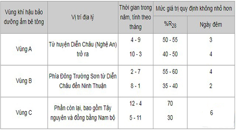 Trong công việc xây dựng, thời gian bảo dưỡng bê tông là yếu tố quan trọng, nhất là trong mùa mưa. Ở vùng A, khi thời tiết ẩm ướt, bê tông cần từ 2,5 đến 5 ngày để đạt được cường độ tối ưu, trong khi mùa khô kéo dài thời gian này đến 5-8 ngày. Thực tế, nếu trời có mưa nhẹ sau khoảng 6–12 giờ, bê tông đã có khả năng chịu đựng mà không lo ngại đến vấn đề tách nước.