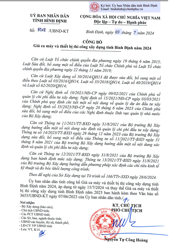 Ngoài ra, tỉnh Bình Định cũng đã có những cải tiến trong việc cung cấp thông tin giá ca máy và thiết bị thi công xây dựng từ năm 2020. Tất cả những thông tin này đều nhằm mục đích tạo điều kiện thuận lợi cho ngành xây dựng tại địa phương, đảm bảo sự minh bạch và kịp thời.