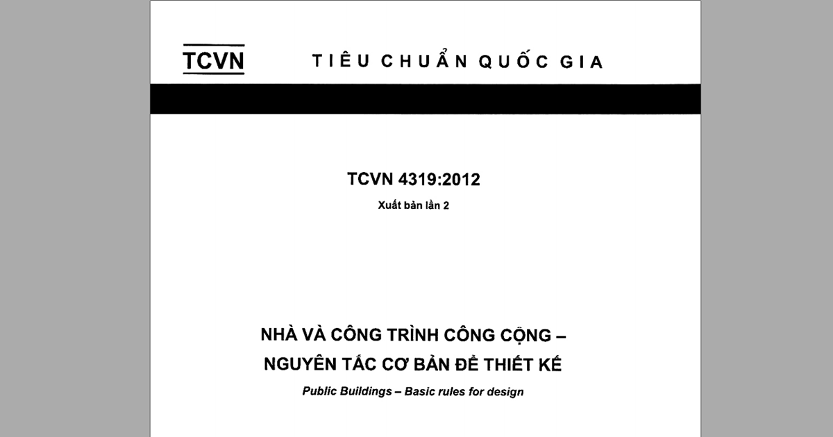 Tiêu chuẩn quốc gia TCVN 4319:2012 về Nhà và công trình công cộng được thiết lập nhằm đảm bảo các nguyên tắc thiết kế cho những công trình phục vụ cộng đồng. Tiêu chuẩn này không chỉ áp dụng cho việc xây dựng mới mà còn cho cả cải tạo những công trình hiện có, bao gồm các lĩnh vực thiết yếu như giáo dục, y tế và thể thao.