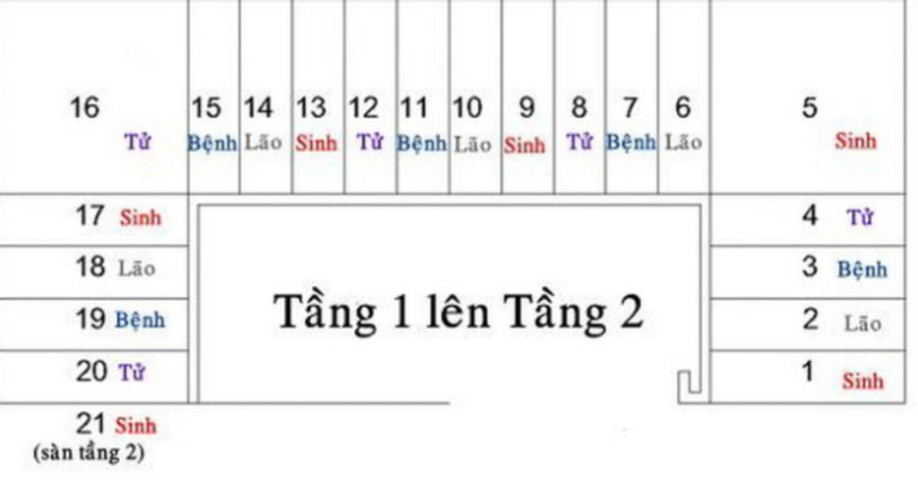 Theo quy luật Sinh – Lão – Bệnh – Tử, tổng số bậc cầu thang thường đánh dấu những khoảnh khắc quan trọng trong hành trình sống của con người. Đặc biệt, đối với nhà hình Kim, các số bậc như 1, 5, 9, 11, và 13, 15 đều được khuyến nghị. Một công thức đơn giản thường được áp dụng là tổng số bậc cầu thang = 4n + 1, trong đó n là số tự nhiên.