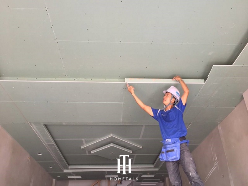 Ngoài ra, trong quá trình thi công, hãy đảm bảo khoảng giãn nở giữa các tấm thạch cao từ 2-3mm, và các mối nối không bị trùng nhau. Nếu bạn thi công ở những phòng kín như bếp, hãy xem xét việc lắp đặt quạt hút khí để tránh tình trạng ẩm ướt, có thể gây nứt hay cong vênh cho trần.