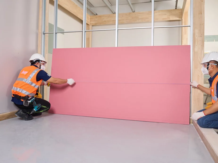 Ở giữa khung cần đưa bông thủy tinh (glass wool) và cố định bằng vít để tăng khả năng cách nhiệt và chống cháy. Ứng dụng đa dạng: nhà xưởng, cửa hàng, trung tâm thương mại, chung cư, phòng ngủ, văn phòng. Vách thạch cao chống cháy giúp tiết kiệm chi phí, cách nhiệt, cách âm và đảm bảo thẩm mỹ. Xây Nhà Nga Việt cũng có bảng báo giá thi công vách – trần chống cháy 2024 chuẩn EI PCCC để quý anh chị tham khảo.